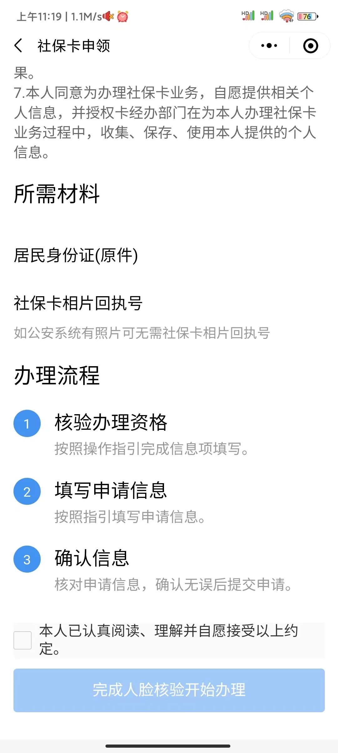 4、查看相关信息并完成人脸核验,通过后按照操作指引填写各项信息,然后提交申请即可。
